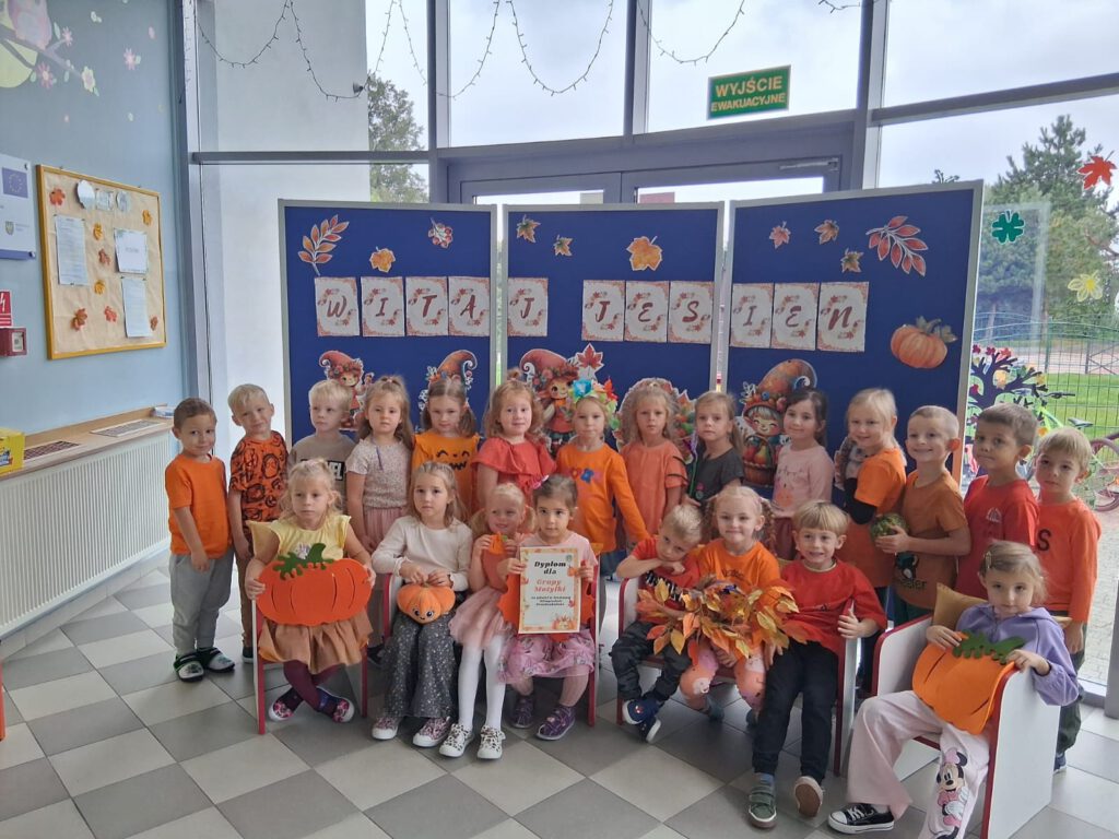 Dzieci wzięły udział w różnorodnych jesiennych konkurencjach, a każda grupa przemieszczała się do kolejnej sali, aby zmierzyć się z nowymi wyzwaniami. Wśród zadań znalazły się m.in.:
