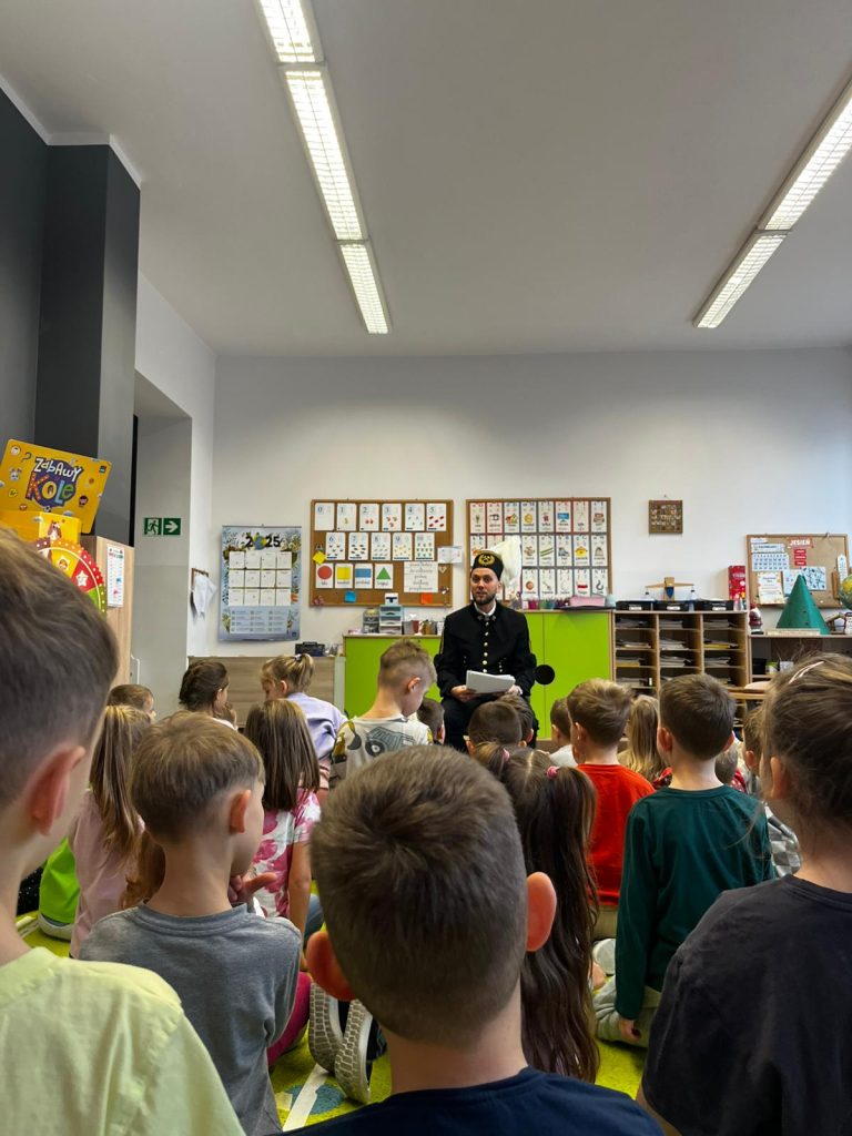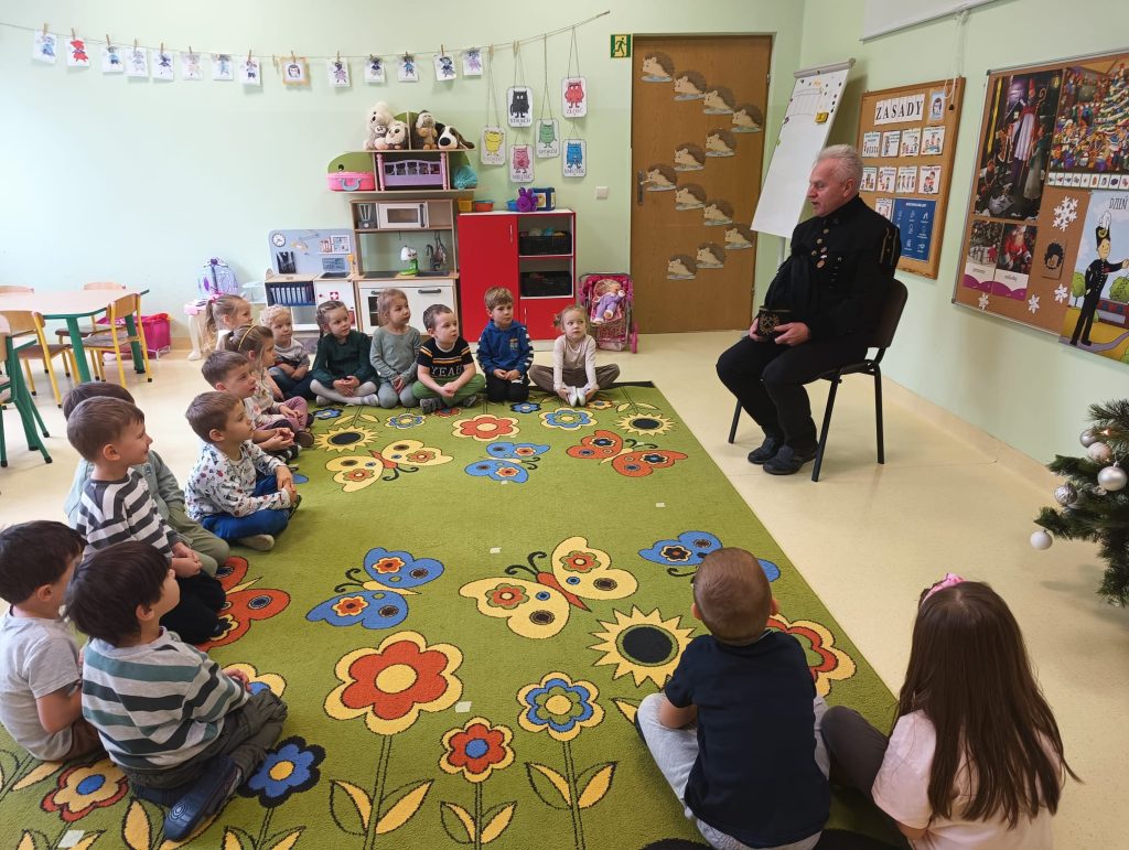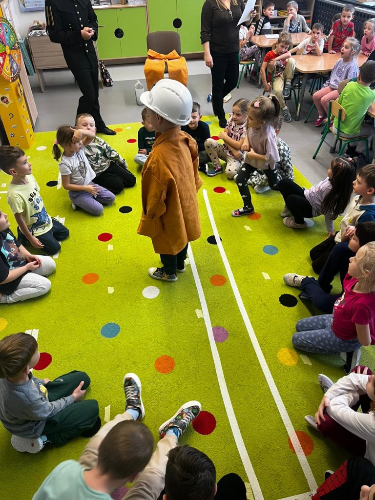 Nasi goście opowiedzieli dzieciom o trudnej, ale bardzo ważnej pracy w kopalni, pokazali elementy stroju górniczego oraz wyjaśnili, skąd wzięły się górnicze tradycje i symbolika. Przedszkolaki mogły z bliska obejrzeć czako, strój roboczy i inne interesujące rekwizyty. Dzieci z zaciekawieniem słuchały opowieści, a na koniec zadały mnóstwo pytań, na które górnicy chętnie odpowiadali. Spotkanie było pełne wiedzy, radości i nowych doświadczeń.